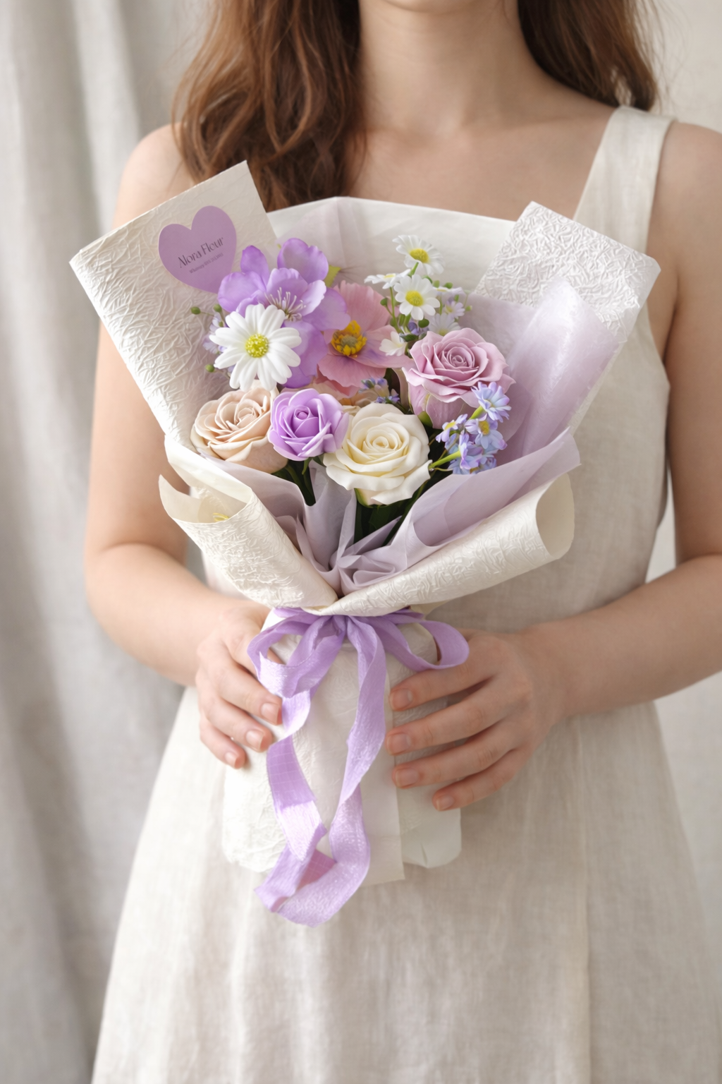 Soft, graceful, and effortlessly elegant — Serena is designed for moments that deserve to be remembered. Featuring a delicate blend of lilac, blush, and creamy tones, this petite bouquet brings a gentle, feminine charm that feels both calming and refined.